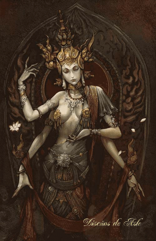 - 1 "Avydya": Está representado por una anciana que camina al lado de un hombre que intenta guiar sus pasos tomándola de la mano. Esto muestra que en una vida anterior fue una mujer con problemas para encontrar el camino pensando en que los demás podrían a ayudar a decidir su destino.